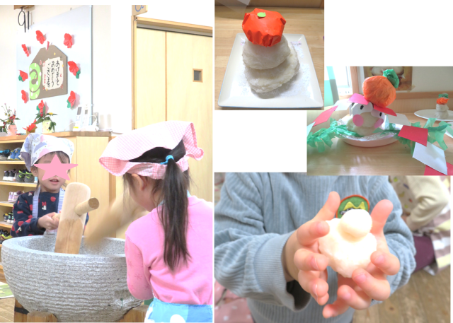鏡もちを作ったり、給食のうどんに入れてもらいました。