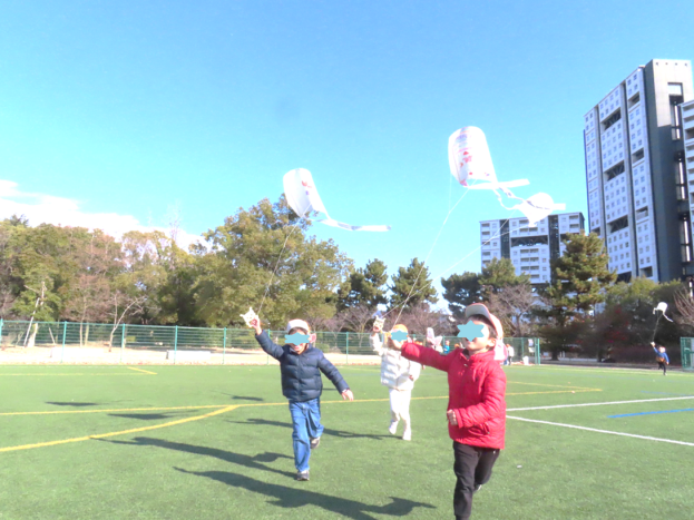 5歳児すいか組が中央公園へ凧揚げに行きました。