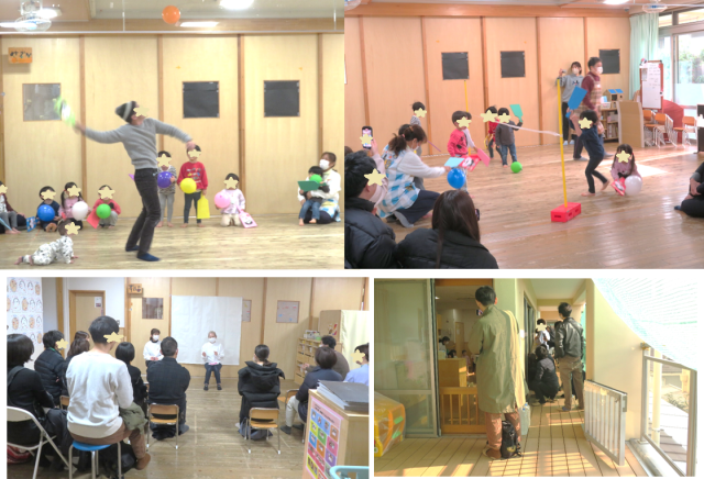 0歳児~5歳児まですべてのクラスに分かれてもらい一緒に楽しみました。とてもにこやかで優しいお兄さん、お姉さんに園児たちも人見知りすることなく直ぐに打ち解けていましたよ。