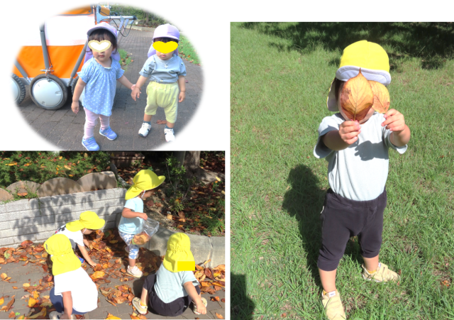 0歳児と1歳児のクラスが秋のお散歩にでかけけました。
