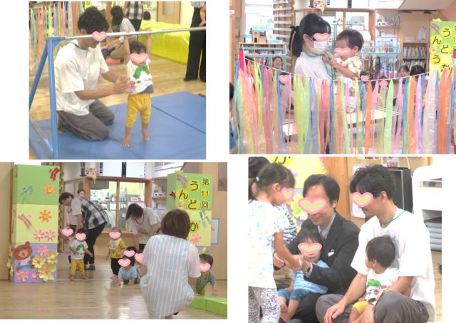 お家の方を見つけて、泣いちゃう子どもたちもいましたが、一緒にサーキットや赤ちゃんハイハイレースを楽しみました!