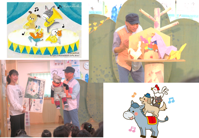 タックンとおりがみおじさんに来て頂き、ブレーメンの音楽隊をみせてもらいましたよ。