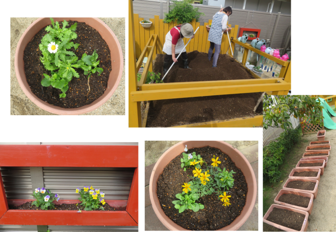 新しいお花を植えて、チューリップを植える準備もできました!全園児1個ずつ球根を植える予定です。76本のチューリップが咲き誇る日が楽しみです(*^^*)