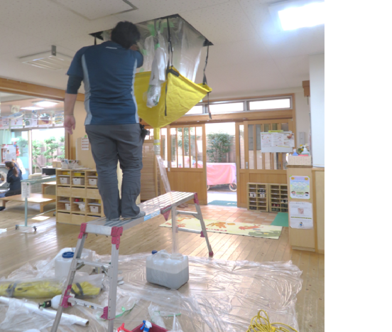 11/9(土)今年もフル活動していた園内のエアコンを全てお掃除してもらいました。分解して、エアコンの奥まで丁寧に清掃してくれました。
