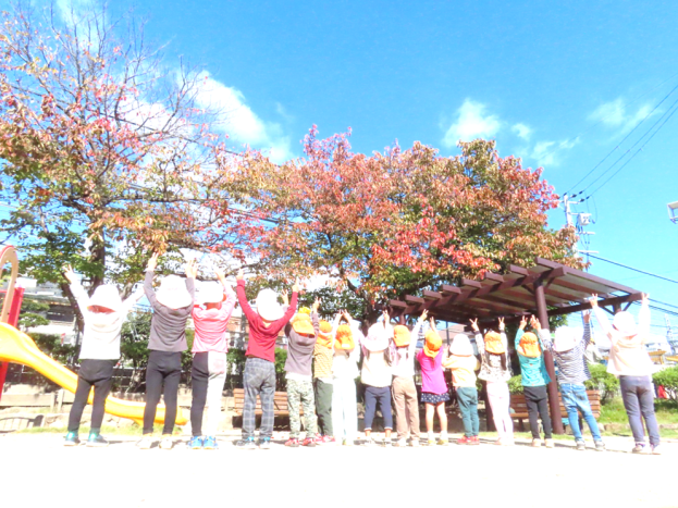 とっても良いお天気で、子どもたちも葉っぱを見つけたり、走ったり、お友達と手を繋いだり楽しそうでしたよ(*^^*)