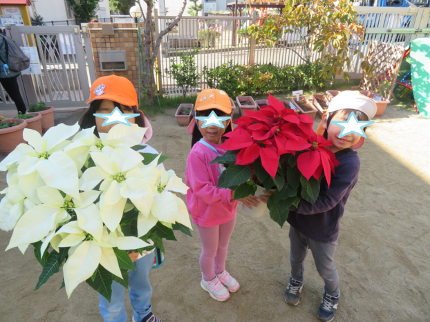 5歳児すいか組が商店街へポインセチアを買いに行ってくれました。