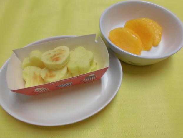 今日のおやつは、「スイートポテト」と「柿」でした。