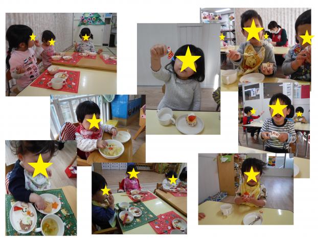 くま組さんの給食風景をのぞくと、「先生の給食、さいこー!」と大きな声で教えてくれました!「おなか、すいてたんだぁ」とお話してくれたり、楽しく食べている姿が見れて、とっても嬉しかったです☻