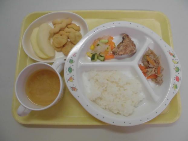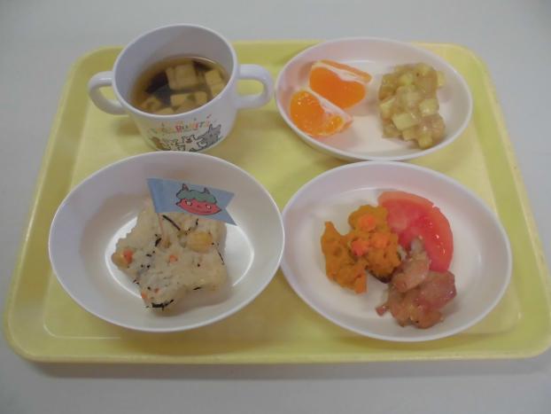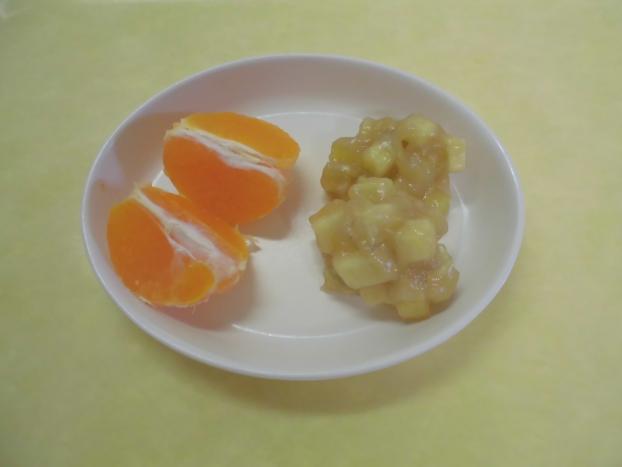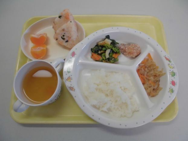 おやつは、「鮭わかめおにぎり」と「みかん」でした。