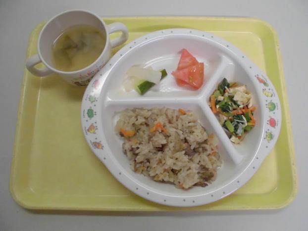 特別メニューの栗ごはん!今年も八百屋さんが立派な栗を持ってきてくれました。甘くてやさしい味でしたよ♪