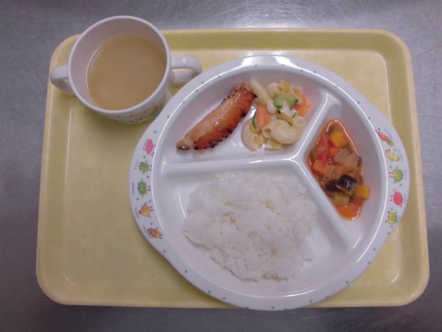 今日の鮭は脂がのっており、洋風な味付けでみんなよく食べていました♪