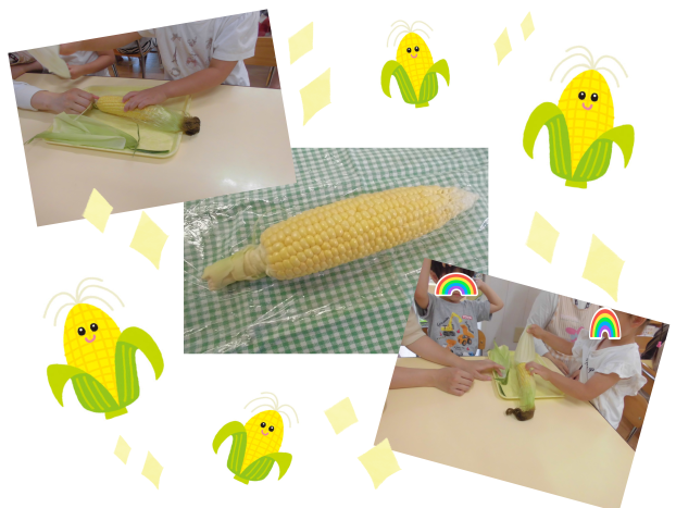 むいてもらったとうもろこしは、明日のおやつのとうもろこしおにぎりに使います☻