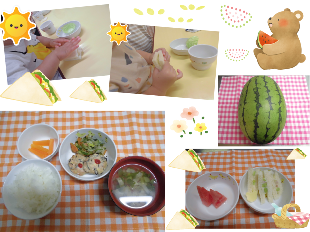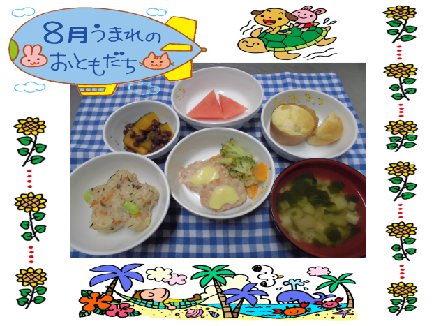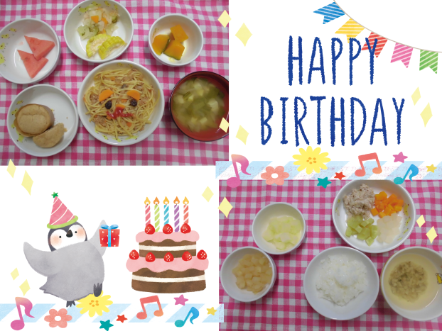今日は8月生まれのお友達のお誕生日会だったので給食室もお誕生日会メニューでお祝いしました!