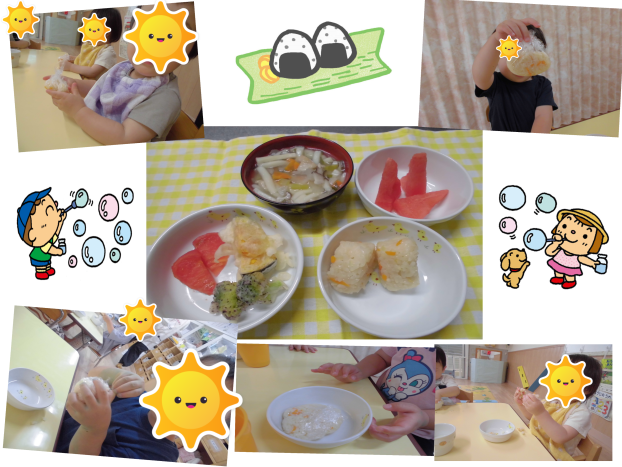 今日はにじ組くまグループ、ほし組でおにぎりを握ってもらうクッキングを行いました!
