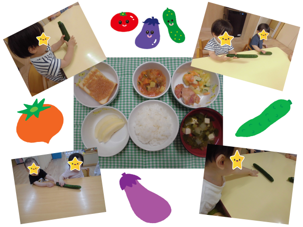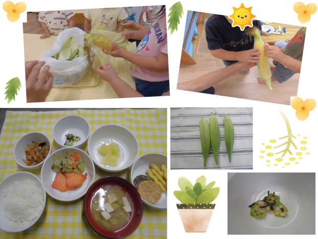 今日はにじ組さんが収穫したオクラを持ってきてくれたので、昆布で和えてみんなで食べました!大きくて立派なオクラでしたがやわらかくて美味しかったですね!