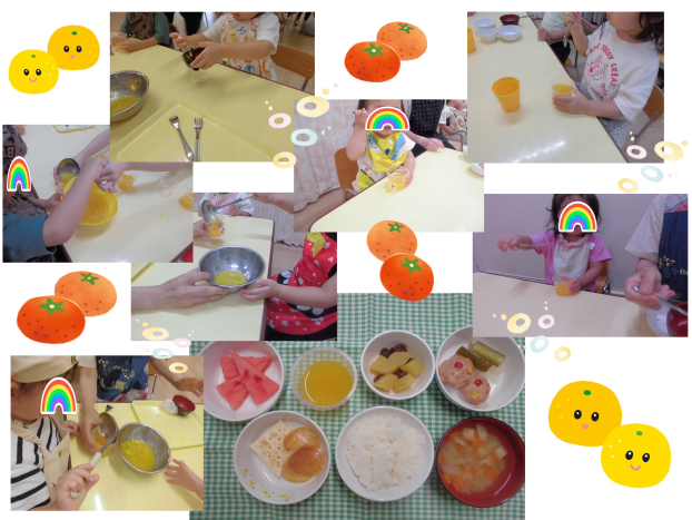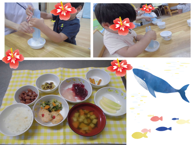 今日は6月生まれのお友達のお誕生日会だったので、給食室もお誕生日会メニューでお祝いしました♪