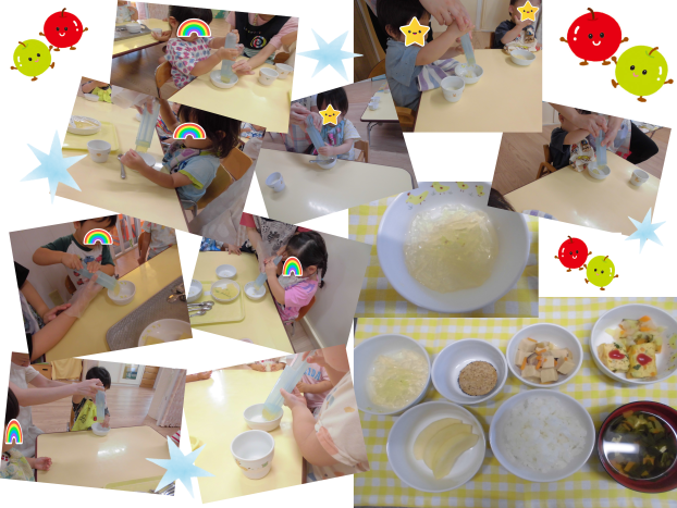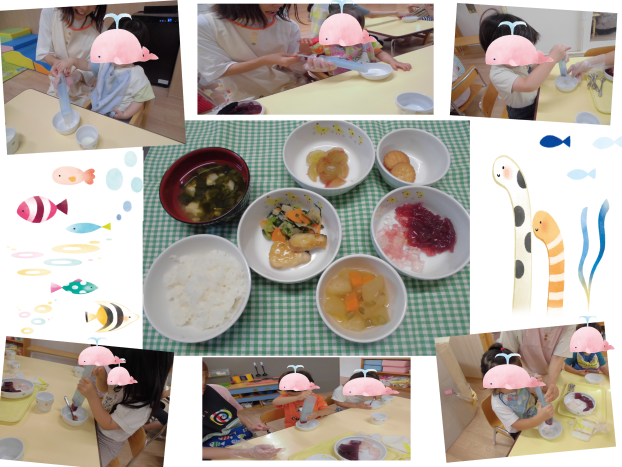 今年2回目のところてんなので、覚えているお友達は自分から率先してところてんを作ってくれました!「作ったの~!」とみせてくれて、「集まれして~」とお皿がピカピカになるまでよく食べてくれました♪