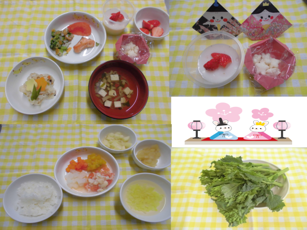 ごはんには菜の花がはいっていましたが、みんなたくさん食べてくれました。まだまだ寒い日もありますが、春を感じる食材ですね♪