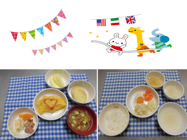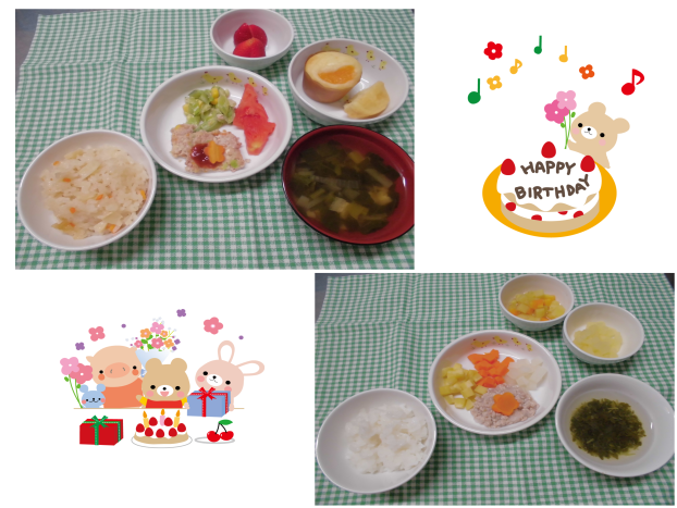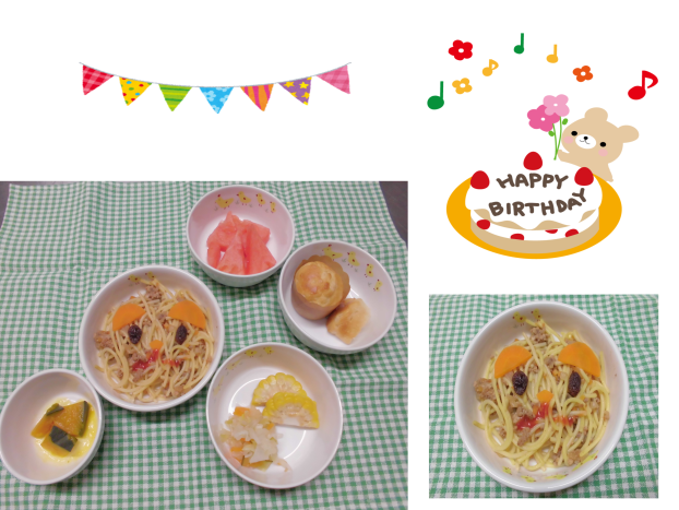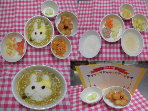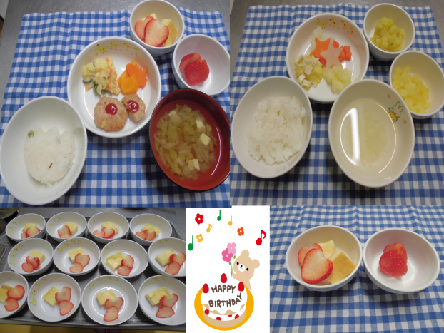 給食室もお誕生日会メニューでお祝いしましたよ♪
