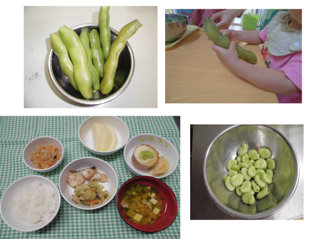 午前中、にじ組うさぎグループのお友だちに鞘むきのお手伝いをしてもらいました。