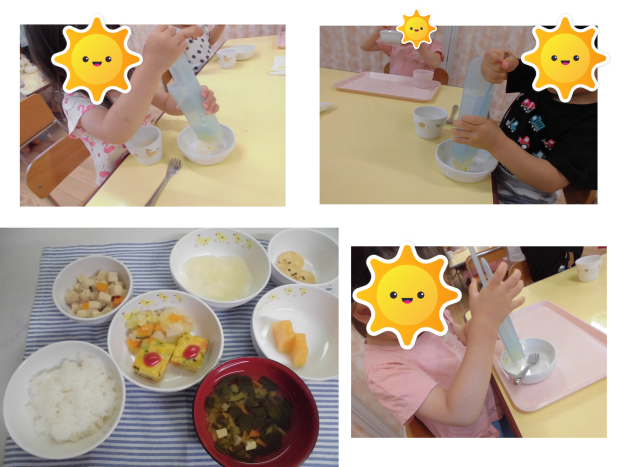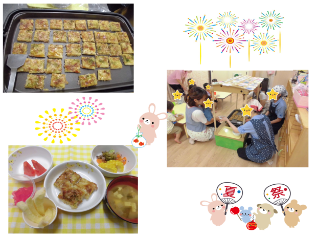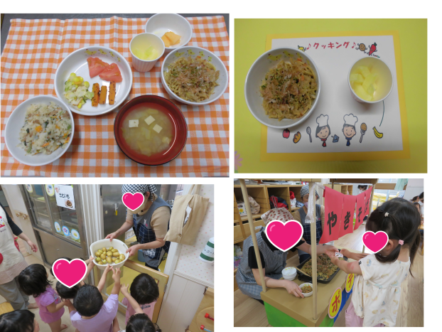 今日は夏祭りがあり、給食・おやつも夏祭りメニューでした♪
