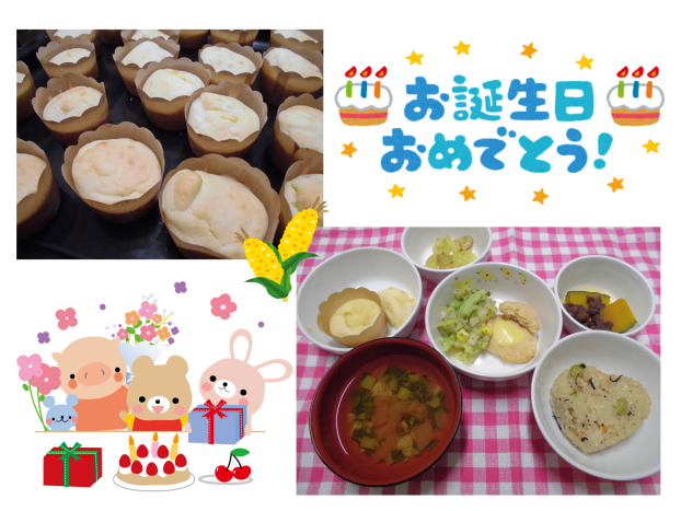 給食室はお誕生日会メニューでお祝いしました☆彡