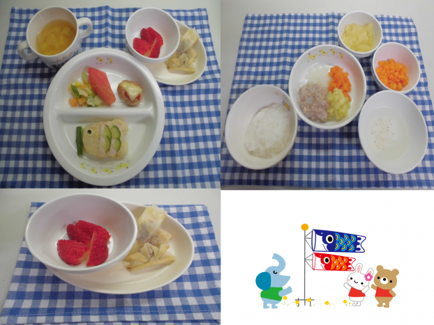 給食は筍ごはんをこいのぼりの形にして提供しました。