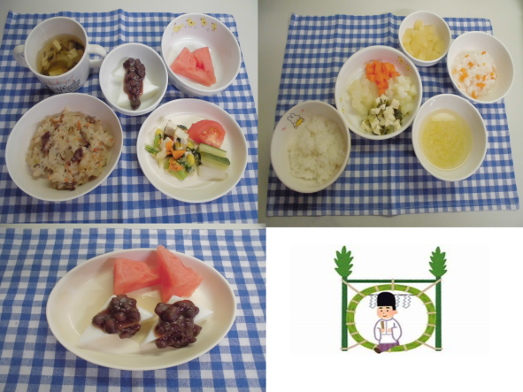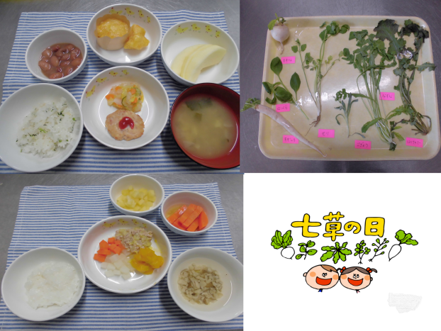 給食では一日早いですが、子どもたちが食べやすいように「七草ごはん」として七草をいただきました。