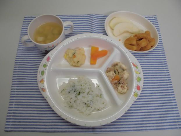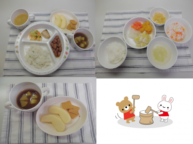 少し塩味のするおかしとリンゴも一緒に提供しましたがみんな、たくさん食べてくれました。
