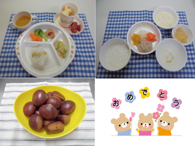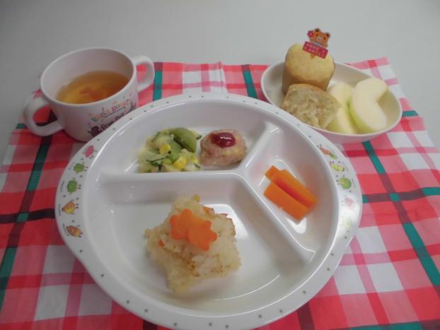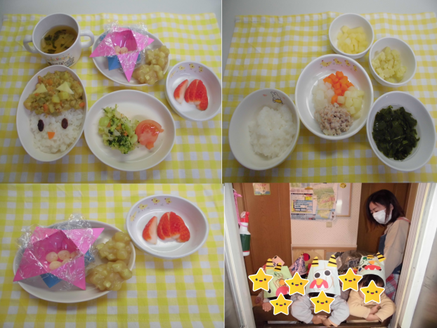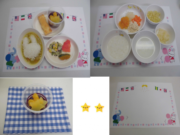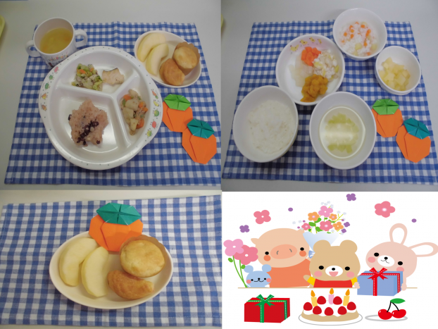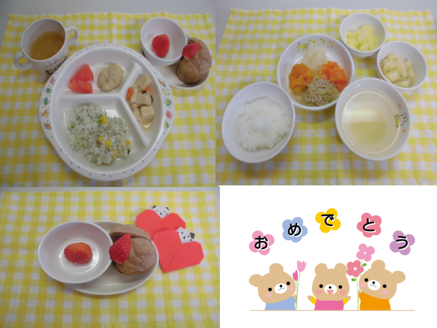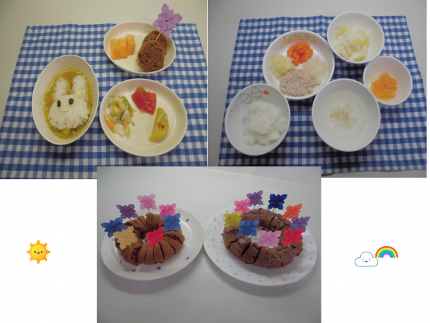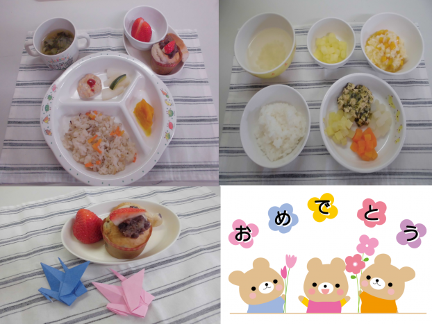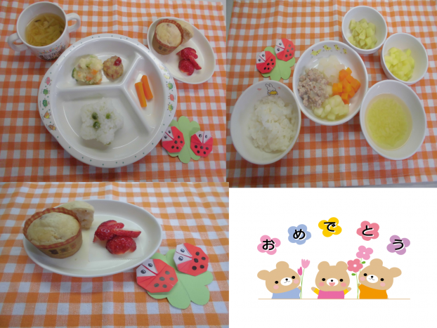 離乳食を食べているお友達もお誕生日会メニューでお祝いしました♪