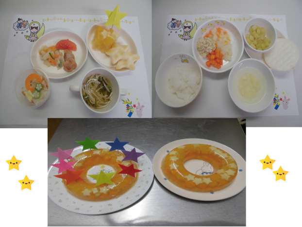 おやつには星をたくさん入れた七夕ゼリーを提供しました。