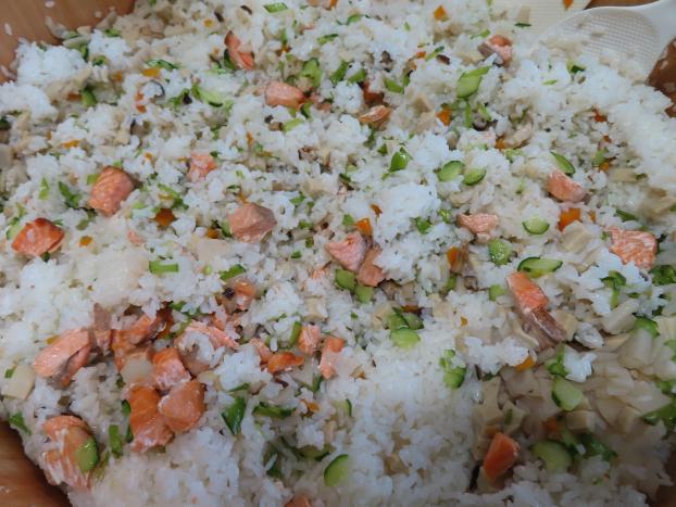 鮭ちらし寿司を作りました。色どりもよく出来ました!!