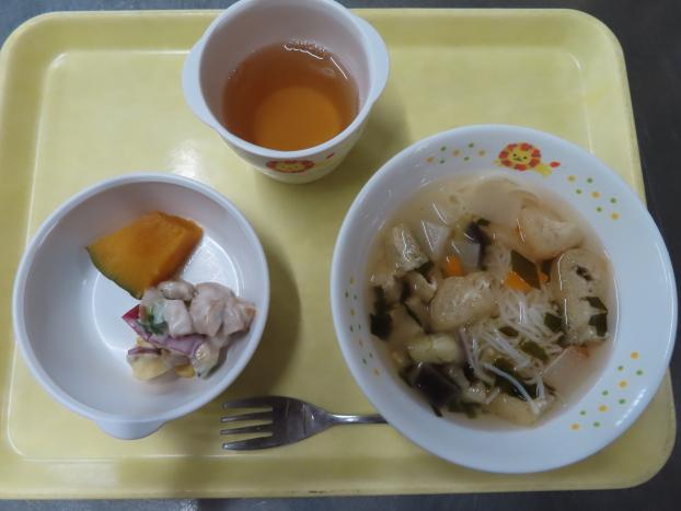にゅうめん・かぼちゃの甘煮・さつまいもサラダ です。