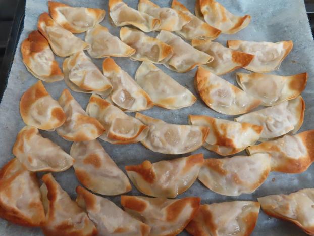 餃子の皮で作りました。外はサクサク中はしっとりでした。