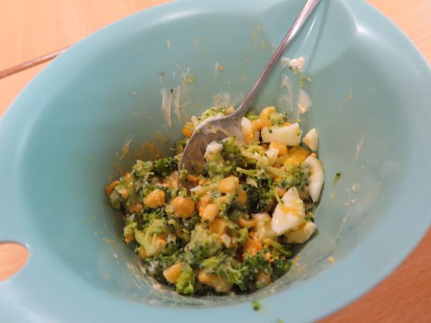 ブロッコリーとゆで卵とコーンでブロッコリーサラダを作りました。