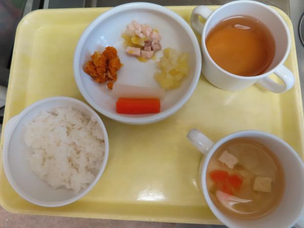 人参かゆ・鮭のあんかけ・ポテトサラダ・かぼちゃと白菜の煮物・