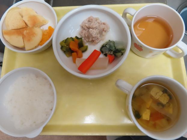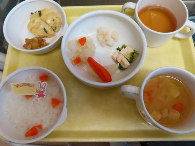 人参かゆ・やわらか肉団子・ほうれんそうとキャベツの煮物・かぼちゃサラダ・おすまし