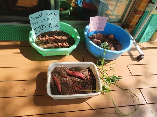 収穫したさつまいもとお米を洗ってお釜に入れるお手伝いをしました。