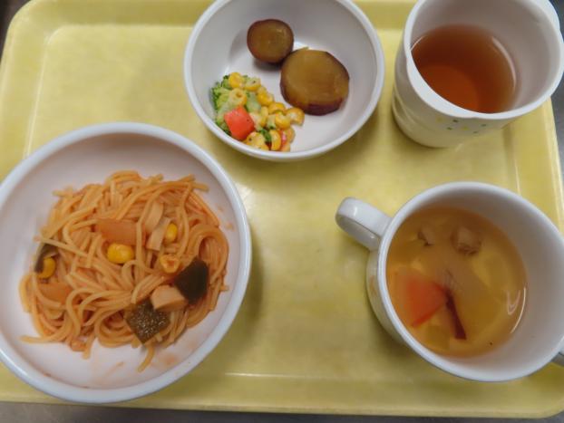 スパゲティナポリタン・さつまいもの甘煮・ブロッコリーサラダ・おすまし です。