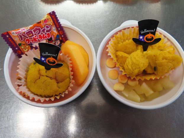 かぼちゃ蒸しパン・かぼちゃボーロ・りんご です。(写真右側)