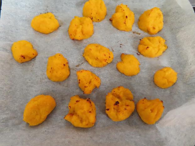 ラップで、丸めて、焼いて美味しくできました。色も黄色で見た目もおいしそうにでき、