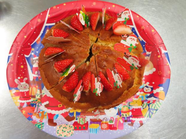 ケーキはホールで作って、取り分けて食べました(^▽^)/